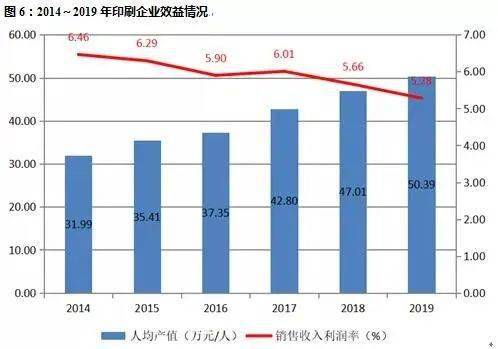 销售收入利润率方面:自2014年以来几乎每年都是呈下降状态。虽然人工成本是控制住了,但是由于纸价上涨以及其他生产要素价格上涨等原因,还是使印刷企业面临着增产不增效的困境。